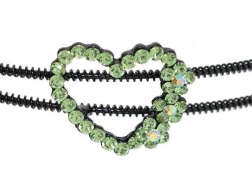 This metal headband is decorated with heart shaped crystals and the ornamentation is on the side of band and about 1.0 inches by 1.25 inches. Read more...