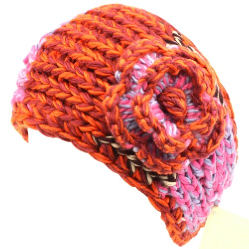 Multicolored Handmade Knit Headwrap Ski Headband Chunky Flower Rust with Purple, Pink, Blue, Brown & Ivory Review