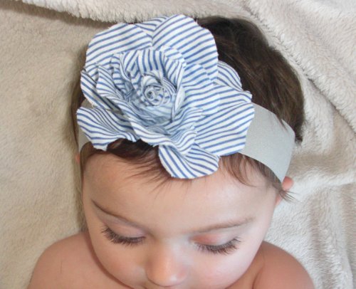 Had Designed 3.5" Blue & White Stripe Rose attached to comfortable Soft Stretchy 1.5" grey elastic Headband Review