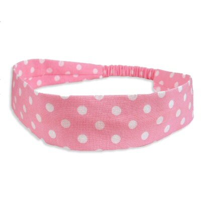White polka dots on pink highlight this soft fabric headband with fabric covered elastic back allowing you to combine the headband with a ponytail without having the elastic showing. Available in 3 sizes, so we have size to fit women and girls from toddlers to grown-ups. The small measures 19-1/2 inches unstretched, the medium 20-1/2 inches unstretched and the large is 21-1/2 inches unstretched. Each size measures 1-1/2 inches at widest point. No excuses for having a bad hair day with this stylish headband! Handcrafted in the USA. Read more...