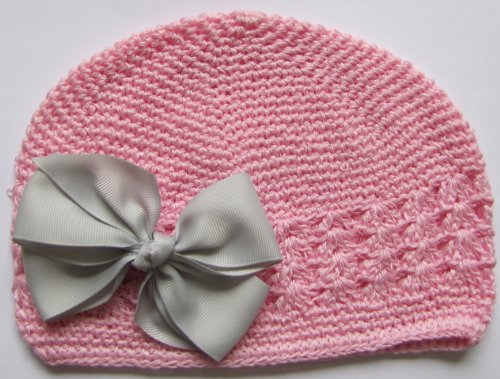 A Girl Company Princess Pink Crochet Beanie Hat with Grey Hair Bow for Baby and Girl Review