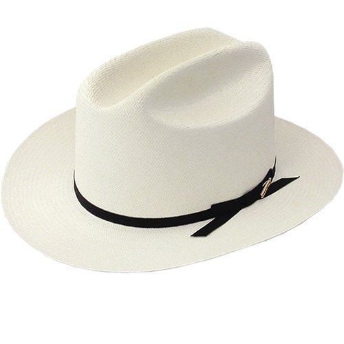 Open Road is a popular Stetson shape worn by ranchers and presidents. We used to call it the LBJ hat. Material is shantung panama with a 2 3/4" brim. The hat has an interior sweatband and a black grosgrain hat band as shown. Perfect for comfort and sun-protection. Read more...
