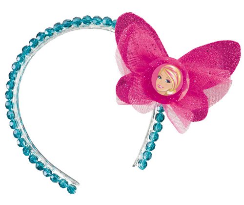 This is an officially licensed Barbie Fairy Secret Headband with clear blue sparkly beads and a butterfly wing shaped flower with a Barbie image in the center! Perfect accessory for your Barbie Fairy Secret Costume!
