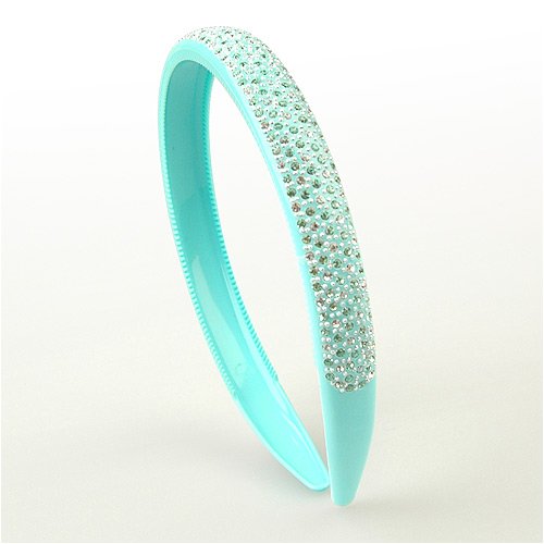 Slip on this perfect-for-a-princess crystal headband and take reign over your youthful attitude and playful personality--all while holding back your hair in style! More than 350 pale green and iridescent Swarovski crystals plus many more tiny silver studs will sparkle in your hair like a jewel-encrusted tiara. You will find this pale mint headband fits comfortably behind the ears and holds even fine hair in place with two hidden rows of tiny teeth on the underside.