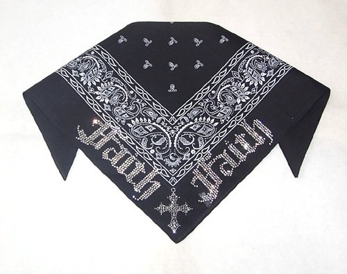 NEW CRYSTAL RHINESTONE FAITH BLACK BANDANA VERY STYLISH NEWEST CUSTOM DESIGN VERY STYLISH !!! SOMETHING DIFFERENT!! BRAND NEW CUTE CUTE CUTE !!! NICE GRAPHIC TATTOO DESIGN WITH SPARKLING CRYSTAL CLEAR FAITH TONS OF GRADE AA RHINESTONES & SILVER CROSS STUDSSAVE ON SHIPPING!!! ADDITIONAL BANDANA FOR PENNY {ItemOverviews}.01 SHIPPING (USA ONLY)100% COTTON, SIZE 22"X22" DIAGONAL 31" ONE SIZES ALL FOR MEN & WOMENRHINESTONE DESIGN ON AREA SHOWN ON PICTURE Read more...