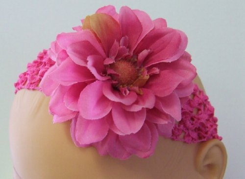 1.5" soft and stretchy headband for babies. This headband features a 3" silk dahlia flower. Available on 3 styles of headbands and in 3 colors. Read more...