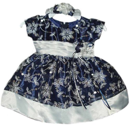 Newborn Toddler Christmas Dress Navy and Silver with Headband (Baby and Toddler Size 3M to 24M) Review