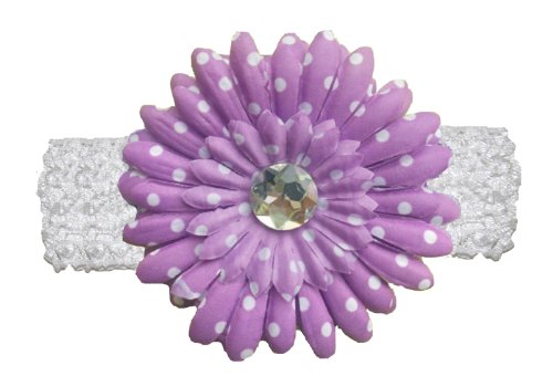 Purple Polka Dot Gerbera Daisy Flower White Crochet Headband Gerber - girls child baby toddler apparel head hair band bow bows girl soft infant youth accessory Review