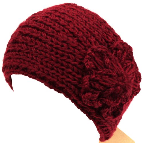 Free Shipping Adjustable Hand Knit Headwrap Headband Chunky Flower Wide Solid Wine @ Amazon.com