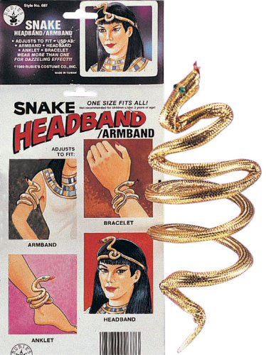 Gold Color Snake Costume Armband/Bracelet - Egyptian Costume Accessories - This Snake Costume Armband/Bracelet fits all sizes. This Snake Costume Armband/Bracelet is available in gold color only. This Snake Costume Armband/Bracelet can be used as an armband, bracelet, anklet, or headband. This Snake Costume Armband/Bracelet is a perfect addition to any Egyptian costume.