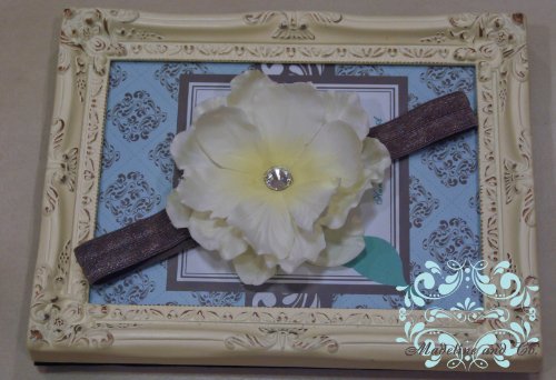 Gorgeous Creamy White Flower with Extra Large Swarovski Crystal Center on Soft, Stretchy Golden Grey Headband. Fits Baby up to Young Girl. Read more...