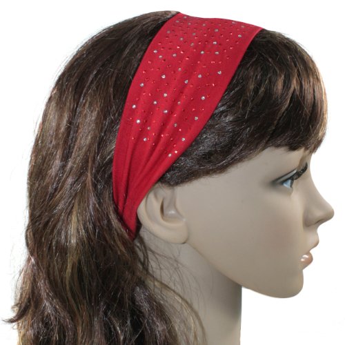 This simple headband is studded with rhinestone for some sparkle. Headband is great for keeping your hair neat and off your face. It is great for when you are washing your face, reading, eating and exercising. An useful hair accessory to have around for women and girls. The headband is 7.5 inches long and 2.57 inches wide and is made of cotton. This headband is available in various colors: Navy Blue, Brown, Purple, White, Red, Pink, Black Read more...