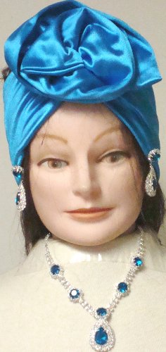 Free Shipping Sterling Silver Plated Crystals and Neon Blue Simulated Jades Necklace Earrings for Women and Teens Offered with Hand Made Spandex Headband @ Amazon.com
