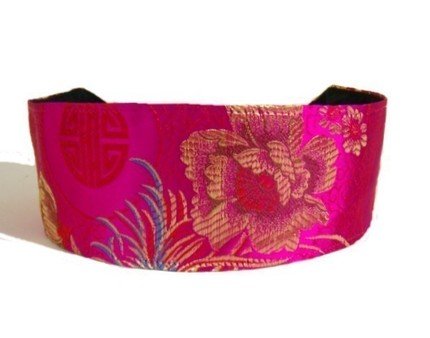 Luxurious Silk Brocade, Golden Flowers, Blue Leaves Over Bright Fuchsia, Gorgeous Headband By Bargain Headbands Review